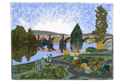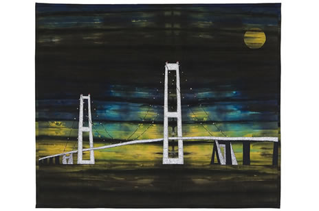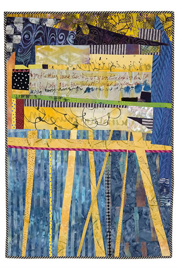 Go to www.quiltfest.com for more information about this show hosted by Mancuso Show Management. ~~~~~~~~~~ AQuA members chose "Bridges" as their theme for a new exhibit of art quilts at the Denver National Quilt Festival II, being held for the second year in Denver, Colorado. May 3 through May 6, 2007 10:00am to 6:00pm, Thursday - Saturday 10:00am to 4:00pm - Sunday Denver Merchandise Mart 451 East 58th Avenue Denver, CO 80216 The festival is hosted by Mancuso Show Management further details available at The Bridges theme statement each artist started with: A bridge can be concrete and steel stretching for miles or a simple wooden plank across a ditch. They can be manmade or carved by nature. But there are also invisible bridges, those involving connection or transition. Join The Art Quilt Association on a trip across many bridges. ~ Bridges was juried by Faye Anderson of Broomfield Colorado. Juror's Choice