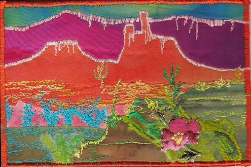 POSTCARDS The Creamery Arts Center Hotchkiss, Colorado November 2 to December 2, 2007 (note date change from the 9th) Fabric postcards are very popular in fiber art circles these days. These original works of art have room on the back for your message and are acceptable to the post office. They are also beautiful framed. Members of AQuA have created postcards which will be available this fall at the Creamery. Below are some representative examples. Come on up to Hotchkiss and see what AQuA artists can do with a tiny canvas. Click here for a link to the Creamery.