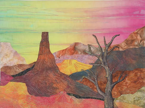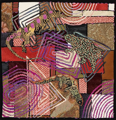 Rita Faussone Rita has always loved to sketch, draw and paint. After using oils for many years, she switched to one of her other loves—fabric. While she no longer makes her own clothes or paints with oils, using fabric and other “stuff” for art quilts fulfills her need to create what she thinks are “works of art”. She feels that “anything” goes when it comes to art quilts, and hopes you will enjoy looking at her pieces. All quilts are available for purchase. Contact Rita.